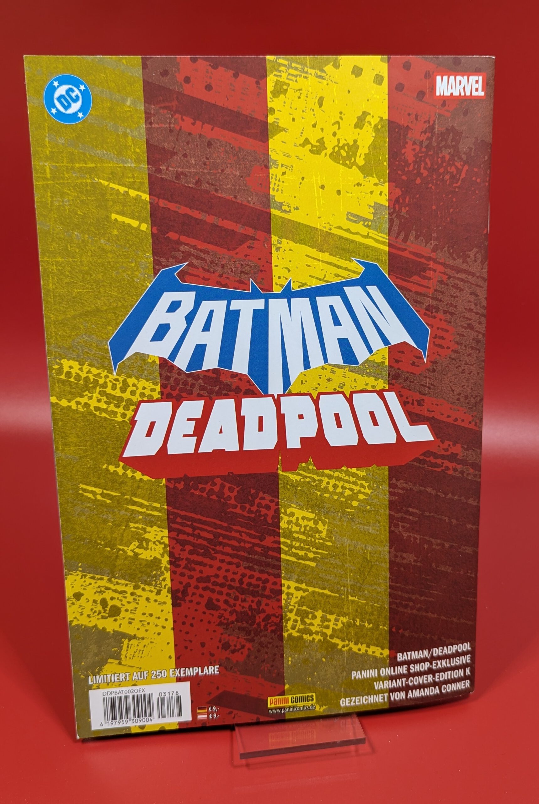 Dass Batman gleich zweimal mit Deadpool „kooperieren“ muss, wird ihm noch weniger gefallen als Wolverine seine Begegnung mit dem redseligen Söldner. Autor Grant Morrison meint zum Crossover: „Ich mache nicht mehr viele Comics derzeit, aber wie sollte ich die Chance ablehnen, noch mal mit Dan Mora zu arbeiten, er ist einer meiner Favoriten, was Zusammenarbeit angeht.“ Was uns erwartet? „Seid gefasst auf Eulen, Blut, Klingen und mindestens eine Riesenschreibmaschine.“ Dan Mora zeigt sich ebenso begeistert, wenn er sagt: „Es ist eine große Ehre, Teil dieses Crossovers zu sein. Ich bin riesiger Deadpoolfan!“