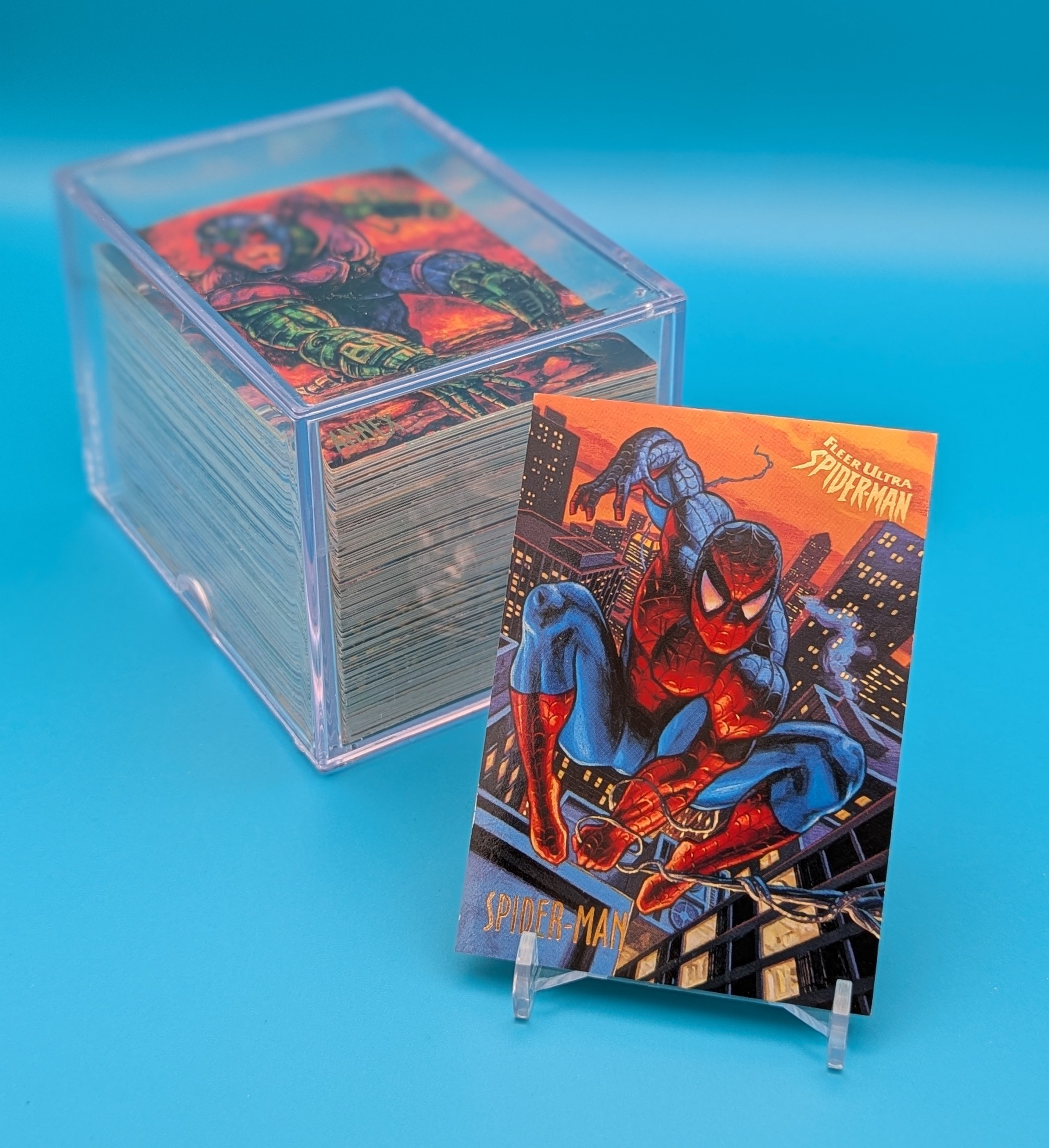 Die Fleer Ultra Spider-Man-Sammelkarten aus dem Jahr 1995 verleihen einer der beliebtesten Figuren der Comic-Geschichte einen Hauch von Kunst und einen gehobenen Charme. Mit zahlreichen gemalten Kunstwerken und mehreren Beilagensets tritt diese Serie in die Fußstapfen der Fleer Ultra X-Men aus dem Jahr 1994.